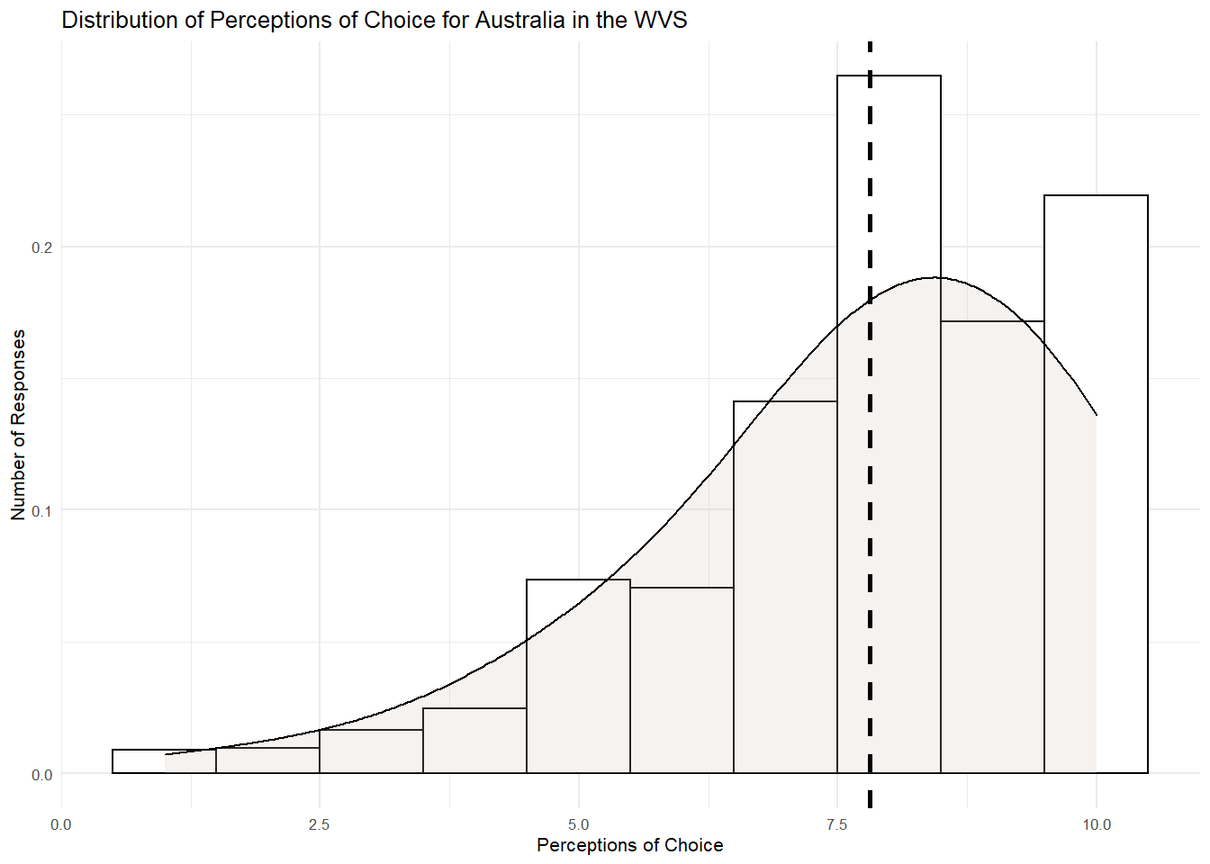 ggtitle("Distribution of Perceptions of Choice for Australia in the WVS") +
