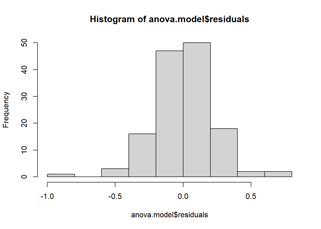 Before checking the normality assumption, we first need to compute the ANOVA. We then save the results in res_aov: