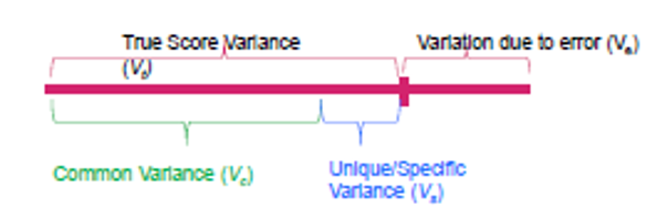 We tend to use the term unique variance to refer to variance that can be reliably attributed to only one item. However, again as we know, there is also variance that is specific to one item but not reliably so. This variance is called error variance and is what is left after common variance and unique variance are subtracted out.