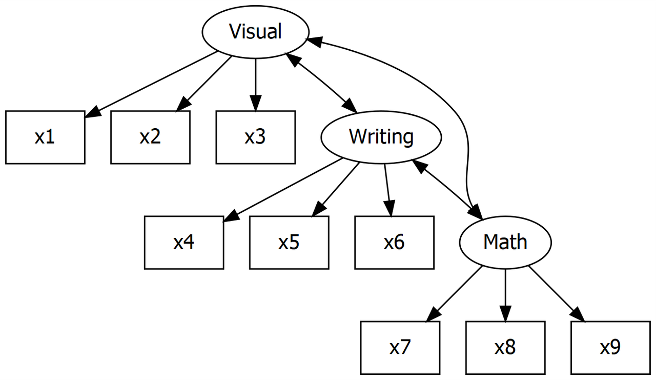 Holzinger and Swineford thought that these abilities could be condensed into three latent abilities for visual skill, writing skill, and math skill: