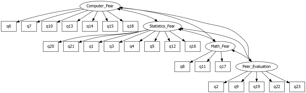 The questionnaire was designed to predict how anxious a given individual would be about learning how to use R. What’s more, they wanted to know whether anxiety about R could be broken down into specific forms of anxiety. In other words, what latent variables contribute to anxiety about R?